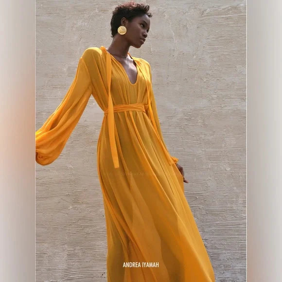 Andrea Imayah Sade Cover-Up in Bark is stunning and comfortable, featuring an A-line silhouette with back keyhole closure and an elegant sash to tie at the waist. Size M/L