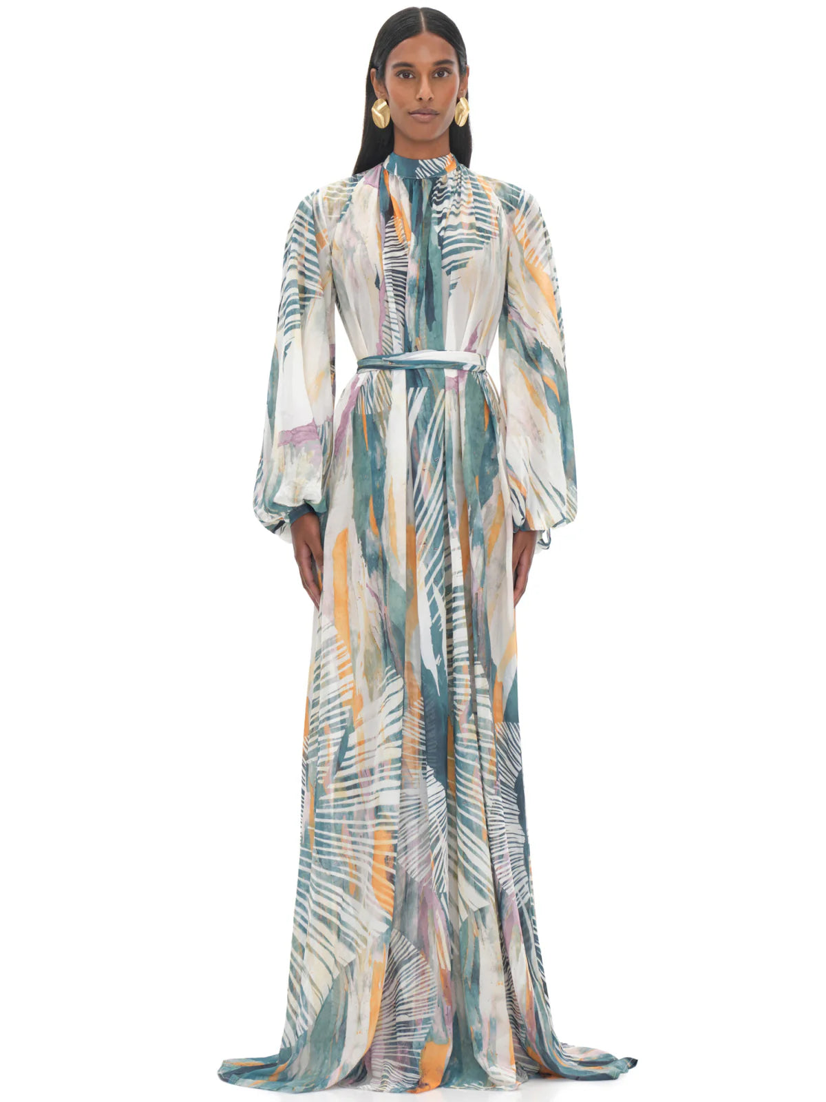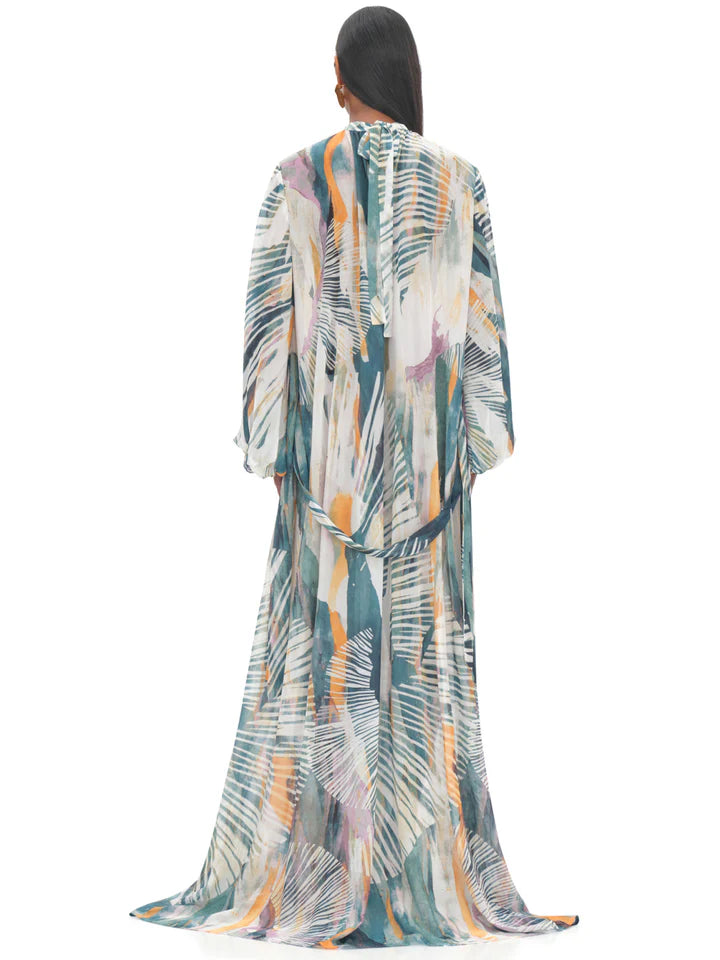 Andrea Imayah Sade Cover-Up in Bark is stunning and comfortable, featuring an A-line silhouette with back keyhole closure and an elegant sash to tie at the waist. Size M/L