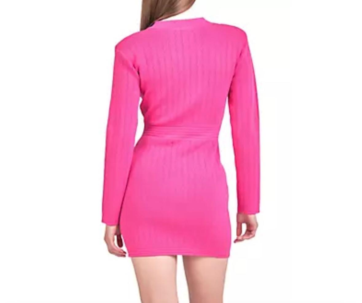 Endless Rose-Long Sleeve Knit Mini-Dress in Fuschia
